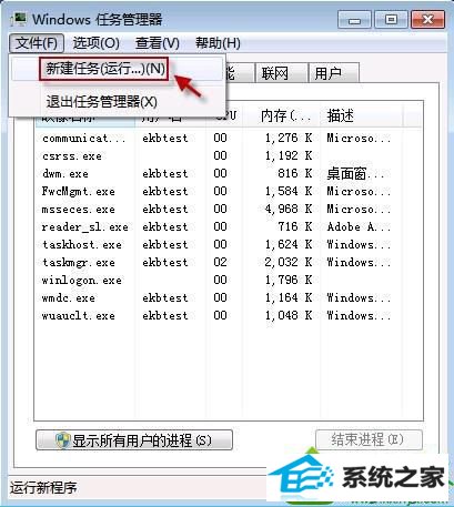4、仍然是在任务管理器窗口,单击“文件-新建任务运行”;