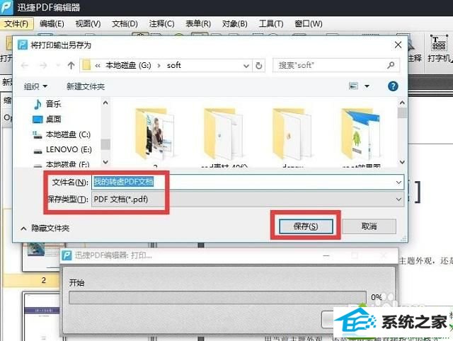 5、出现“另存为”窗口后,在此输入要输出保存的pdf名称,点击“确定”按钮即可将pdf文档进行转曲操作;