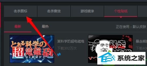 3、在皮肤设置栏,点击“击杀图标”这个分类;