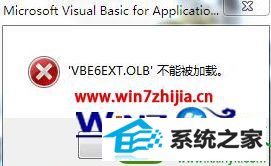 今天和大家分享一下win10系统office中vbe6ext.obl不能加载问题的解决方法,在使用win10系统的过程中经常不知道如何去解决win10系统office中vbe6ext.obl不能加载的问题,有什么好的办法去解决win10系统office中vbe6ext.obl不能加载呢?小编教你只需要  1、office中无论是打开word还是excel等,总会弹出对话框“vbe6ext.obl“不能被加载;  2、因为无法加载,所以我们可以看出,这是因为电脑程序中缺少”vbe6ext.obl“这一文件。所以我们在百度里面搜索vbe6xt.obl;就可以了;下面就是我给大家分享关于win10系统office中vbe6ext.obl不能加载的详细步骤::