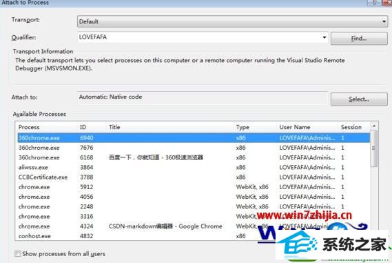 然后,弹出附加进程的地方,如下所所示:
