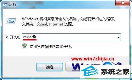 1、首先在键盘上按组合键(win键+R)打开运行窗口,输入“regedit”,回车确认;