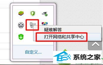 3、还有一种情况,就是无线网卡被禁用时,是无法开启无线网卡的。对此,右击“网络图标”,从弹出的菜单中选择“网络和共享中心”项;