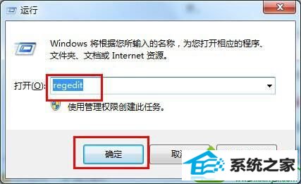 1、按“win+R”打开“运行”窗口,输入“regedit”命令后按回车。