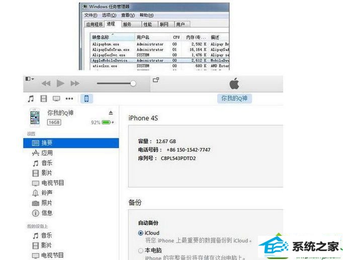 1、看看是不是已经启动了,我们在“任务管理器”中找到applemobiledeviec.exe进程,按ctrl+del+shift即可打开;