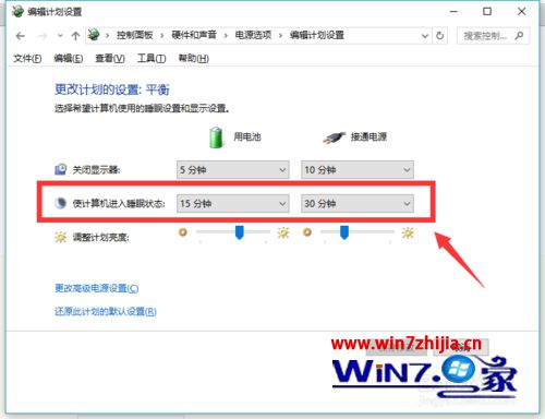 4、然后就可以对电脑的睡眠时间进行修改。
