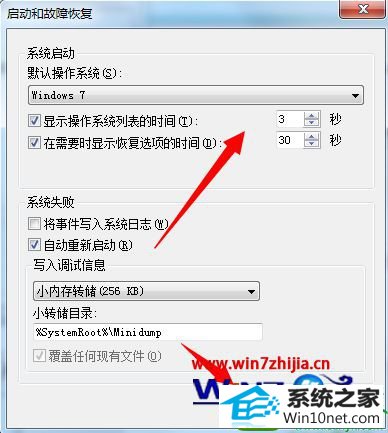 5、可以看到【显示操作系统列表时间】,在右方设置相应的时间即可,下方的恢复选项显示时间,是系统出现故障后进入修改界面,显示的时间,我们可以自行设置。